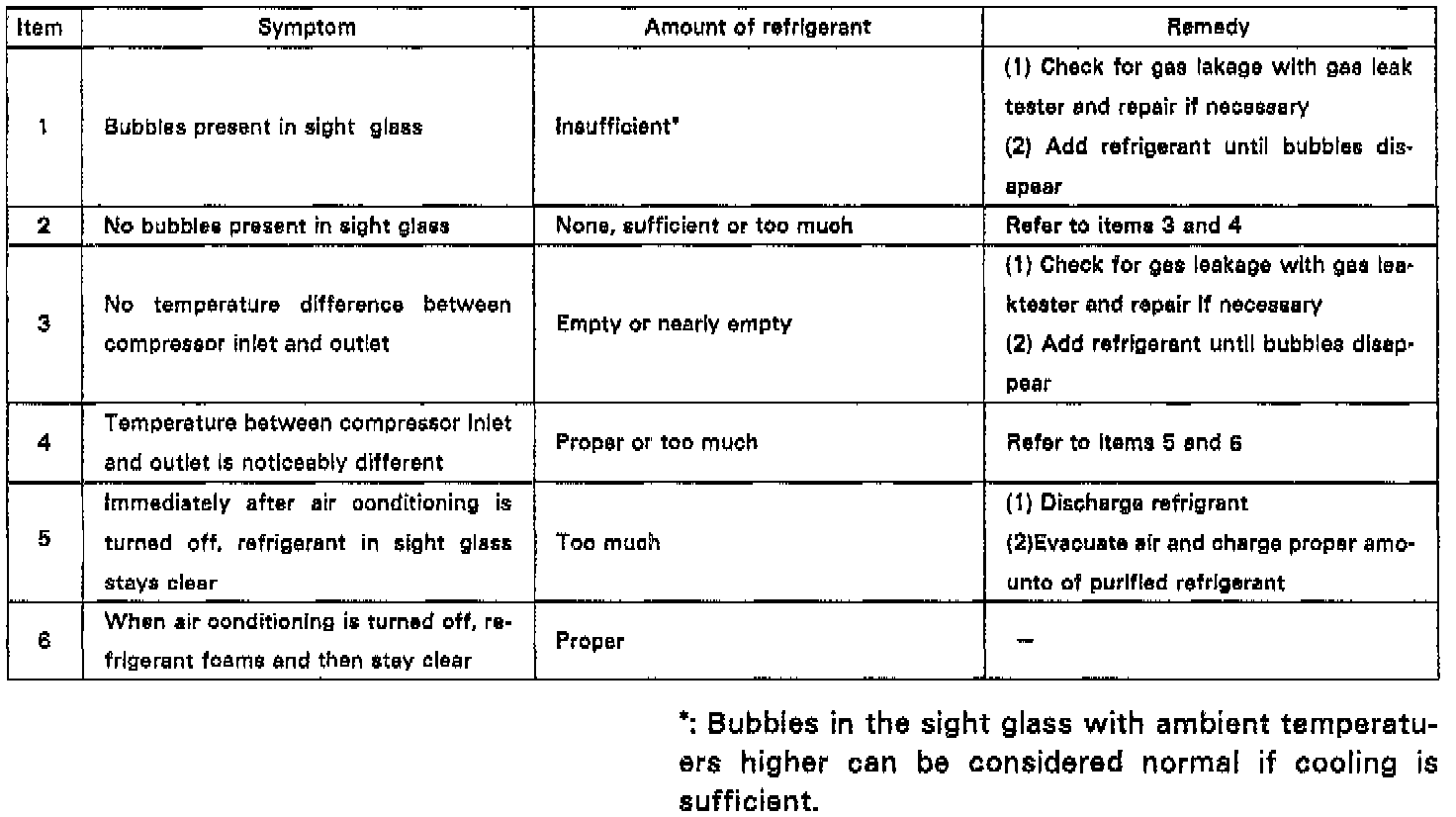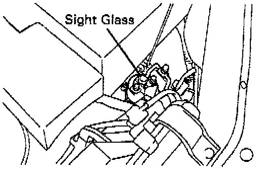 3. Inspect amount of refrigerant. Observe the sight glass on the liquid tube.