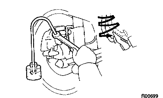 (c) At the point when fluid stops comming out, tighten the bleeder plug, then release the Brake Pedal.