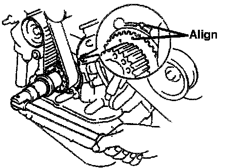 - Turn the crankshaft and align the crankshaft timing pulley groove with the oil pump alignment mark.
