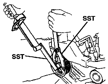 Using SST. turn the camshaft pulley, align the timing marks of the camshaft and the No.3 timing belt cover