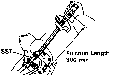 ^ Using appropriate tools, connect the outlet pipe to the pump bracket (SST 09631-22020).