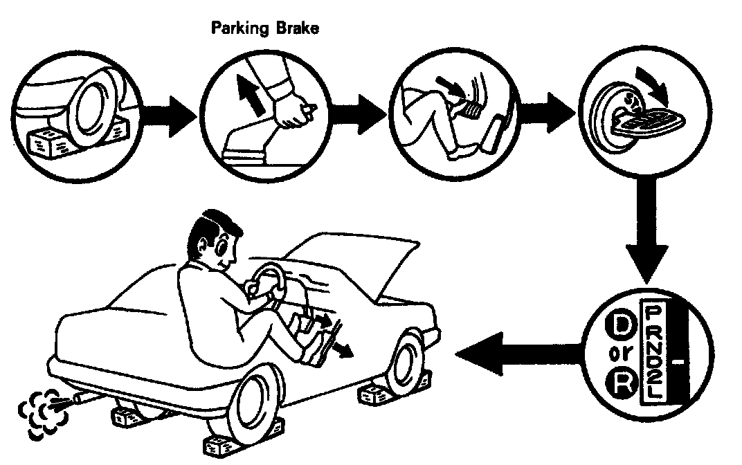 (d) Keep your left foot pressed firmly on the brake pedal.