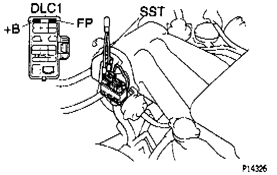 6. Using jumper connect terminals +B and FP of the Data Link Connector (DLC) 1 (SST 09843-18020).