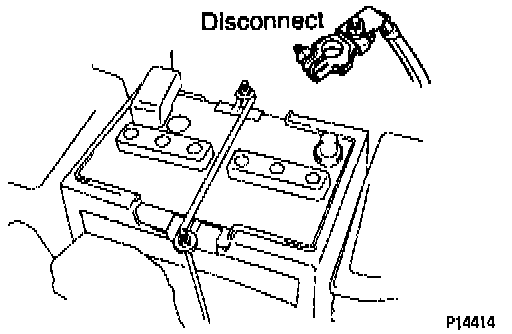 CAUTION: Work must be started after 90 seconds from the time the ignition switch is turned to the LOCK position and the negative (-) terminal cable is disconnected from the battery.