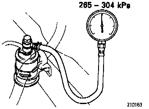 If pressure is not as specified, check the vacuum sensing hose. If hose OK, replace Fuel Pressure Regulator.