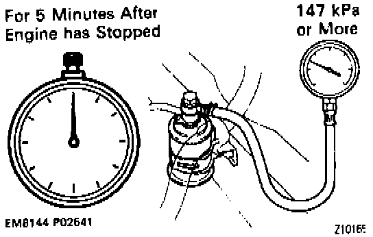 17. Check that the fuel pressure remains as specified for 5 minutes after the engine has stopped.