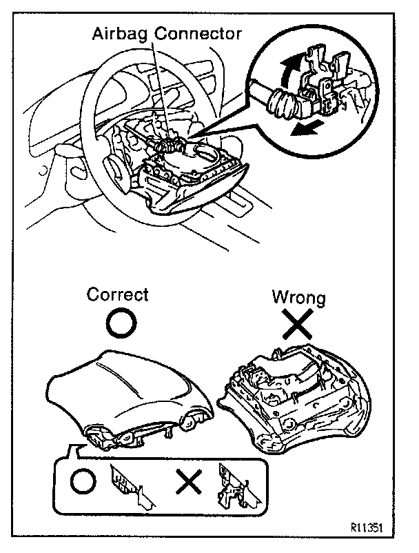 NOTICE: When removing the wheel pad, take care not to pull the airbag wire harness.