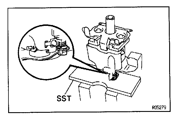 (d) Using SST, set the steering column on a press. as shown in the illustration. SST 09236-00101 (09237-00010)