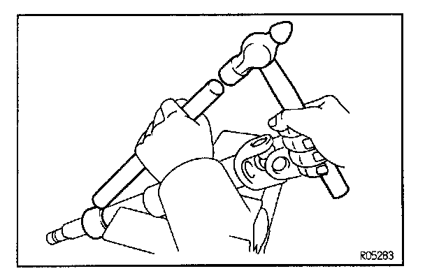 (c) Using a plastic hammer, tap the shaft assembly until the main shaft stopper contacts the collar.