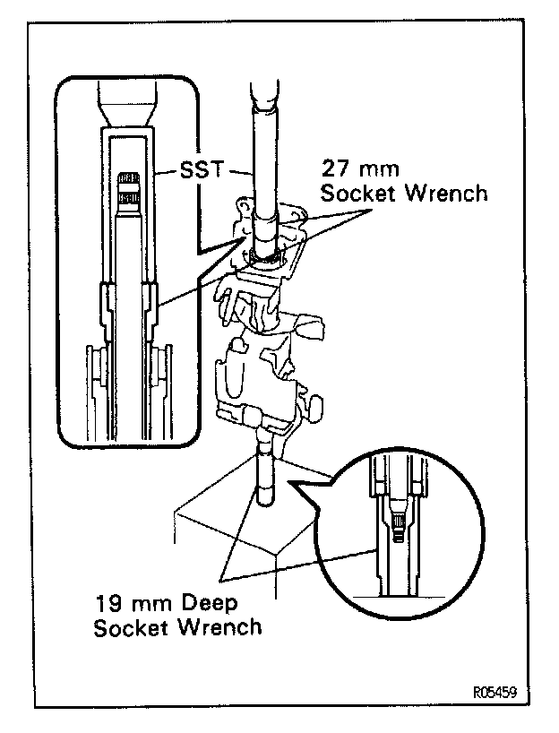 (c) Using SST, a socket wrench (27 mm) and deep socket wrench (19 mm), press in the shaft assembly. SST 09612-22011