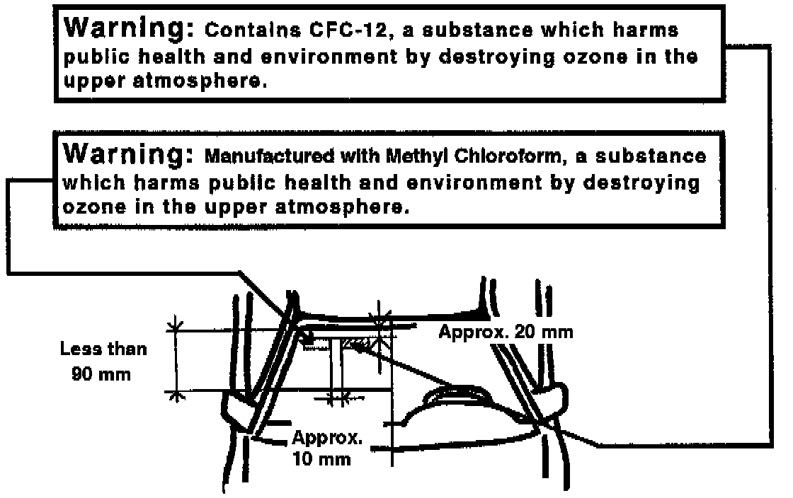 Beginning with May 15, 1993 production, the EPA has required two Ozone Depleting Substance (ODS) Caution Labels to be applied on every new vehicle. The first is required when Methyl Chloroform is used in the vehicle manufacturing process. The second label, a Chlorofluorocarbon (CFC-12) Caution Label, is required to be installed on new vehicles when the vehicle is equipped with an air conditioning system, manufactured after May 15, 1993, which utilizes R-12.