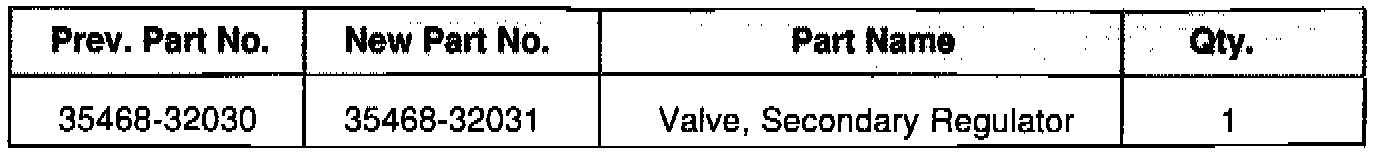 Secondary Regulator Valve Internal orifice diameter reduced from