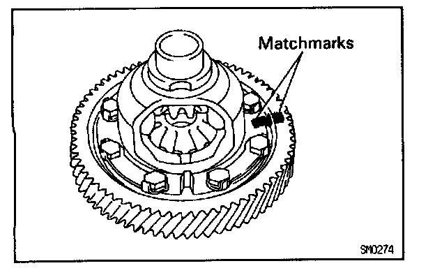 a. Place matchmarks on the ring gear and the case.