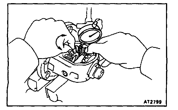 Using a dial indicator, measure the backlash of one side gear while holding one pinion toward the case.