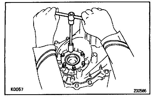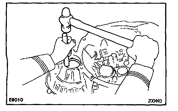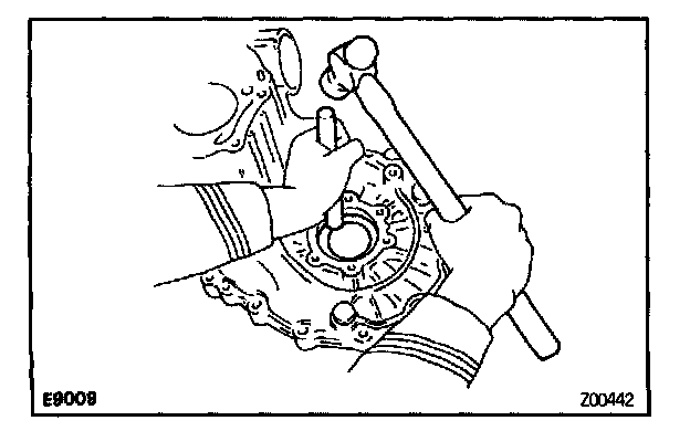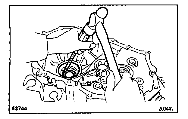 a. Using a brass bar and hammer, drive out the bearing outer race.