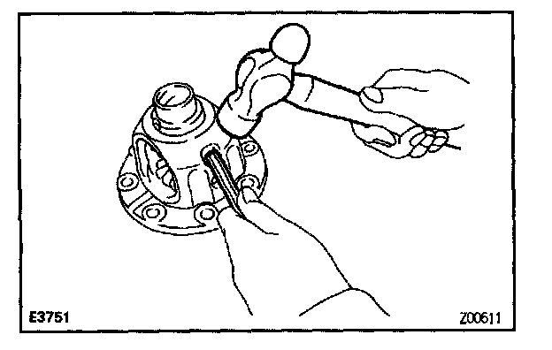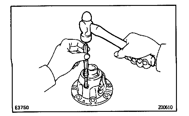 d. Using a pin punch and hammer, drive in the straight pin through the case and hole in the pinion shaft.