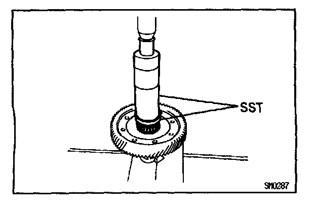 a. Using SST, remove the bearing from drive gear side of the case.