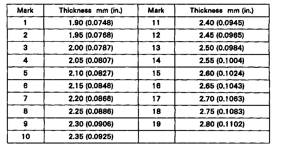 If the backlash is not within specification, install a thrust washer of different thickness.
