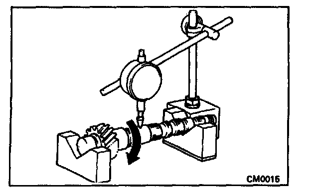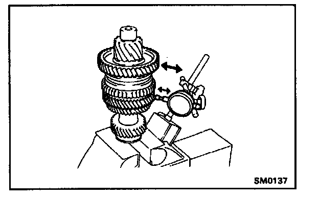 Using dial indicator, measure the radial clearance between the gear and shaft.