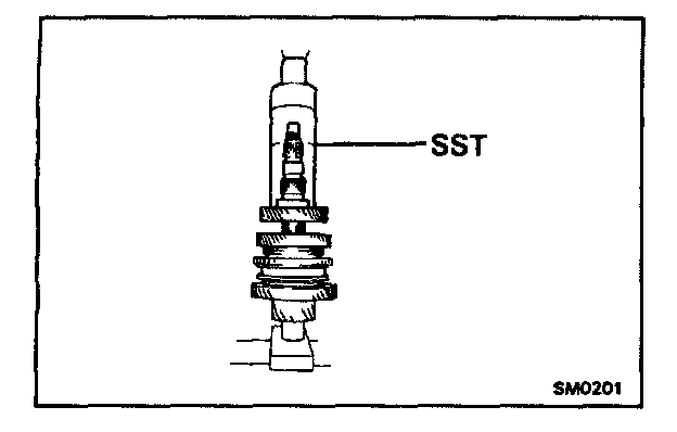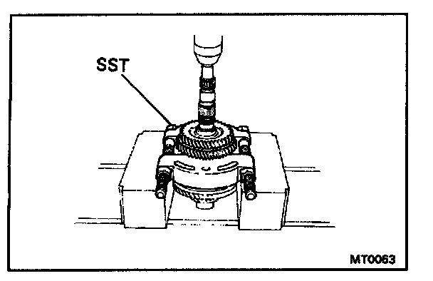 a. Using SST and a press, remove the rear ball bearing and 4th driven gear.