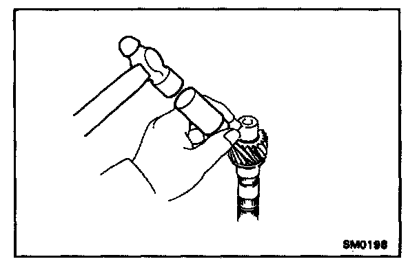 - When replacing either a synchronizer ring or gear, apply a small amount of fine lapping compound between the synchronizer ring and gear cone.