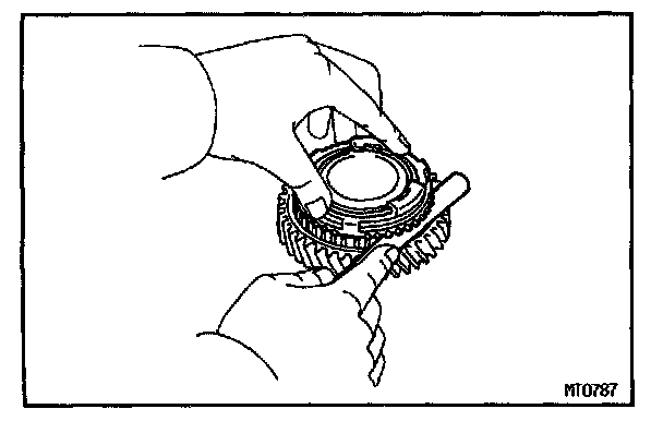 Lightly rub the synchronizer ring and gear cone together.