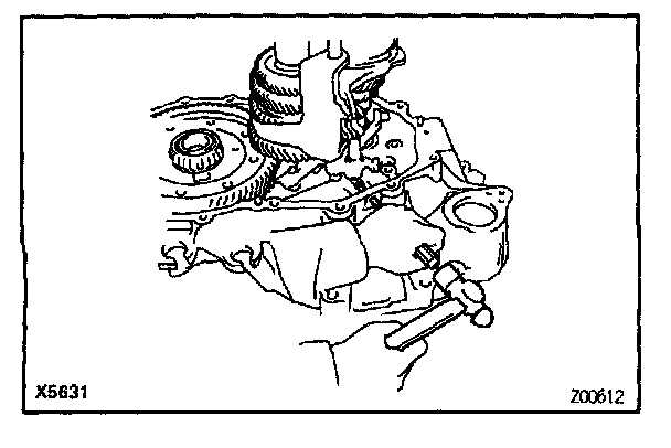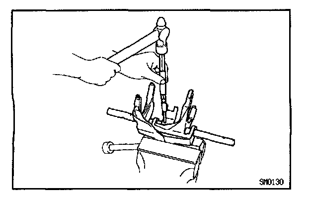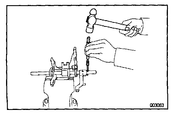 g. Using a pin punch and hammer, drive in the slotted spring pin to the No.1 fork shaft.