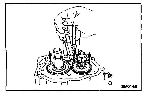 HINT: If it is difficult to install the snap ring, pull up the shafts.