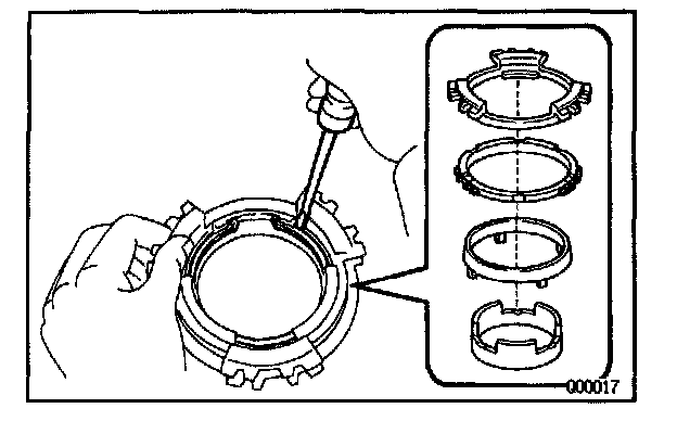 HINT: Wrap vinyl tape on the screwdriver to prevent damaging the synchronizer ring.
