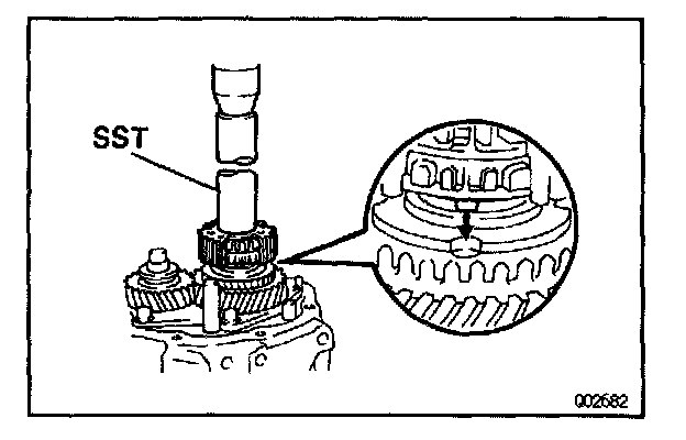 NOTE: Align the holes of the 5th gear and synchronizer ring.