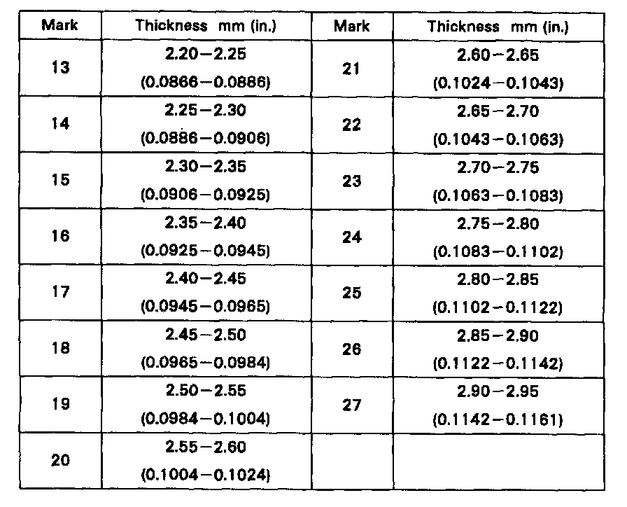 Standard clearance: 0.20 - 0.40 mm (0.0079 - 0.0157 in.)