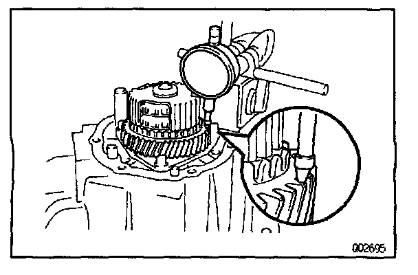 Using a dial indicator, measure the thrust clearance.