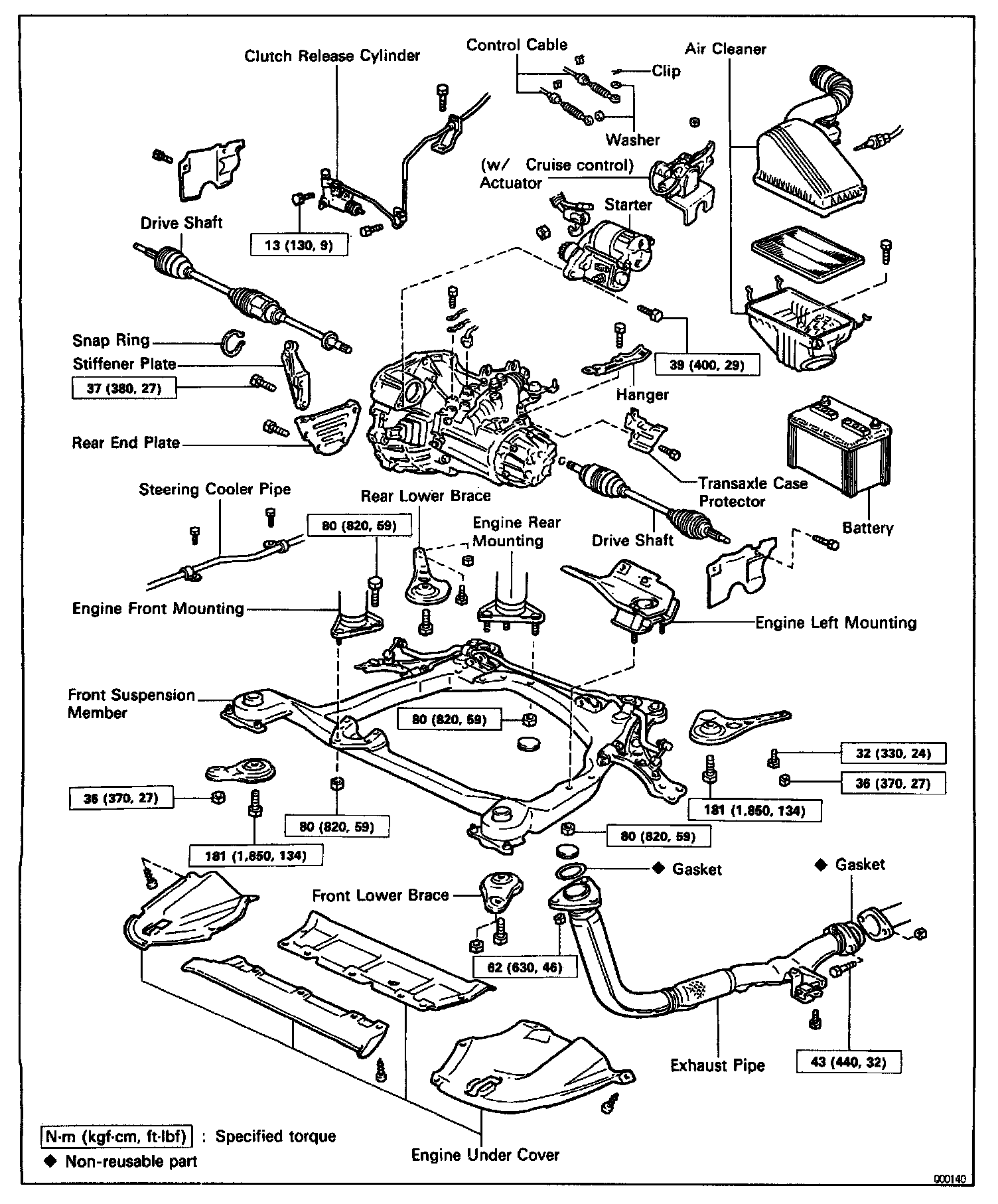 Torque: 43 N.m (440 kgf-cm, 32 ft-lbf)