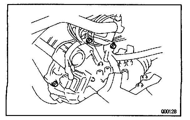 c. Remove the 3 bolts and engine left mounting.