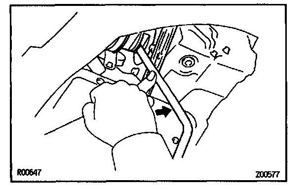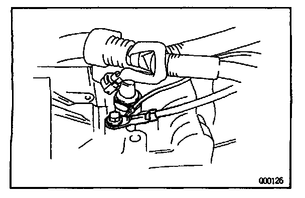 CAUTION: Work must be started after 90 seconds from the time the ignition switch is turned to the "LOCK" position and the negative (-) terminal cable is disconnected from the battery.