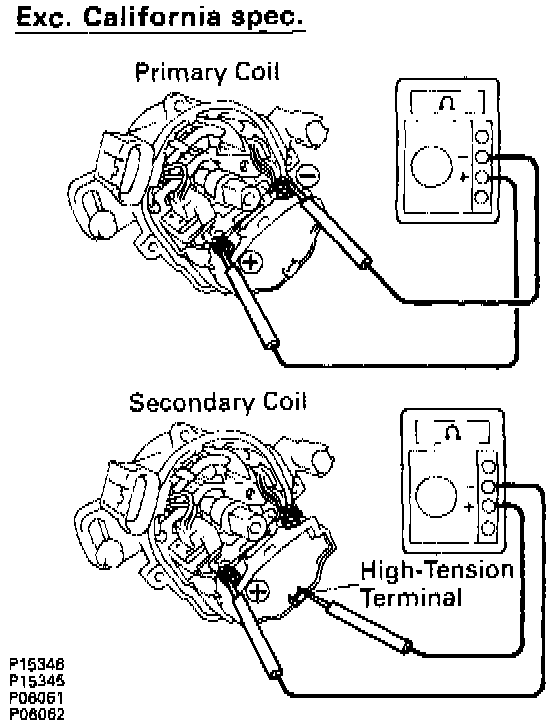 - Measure resistance between the positive (+) and high-tension terminals.