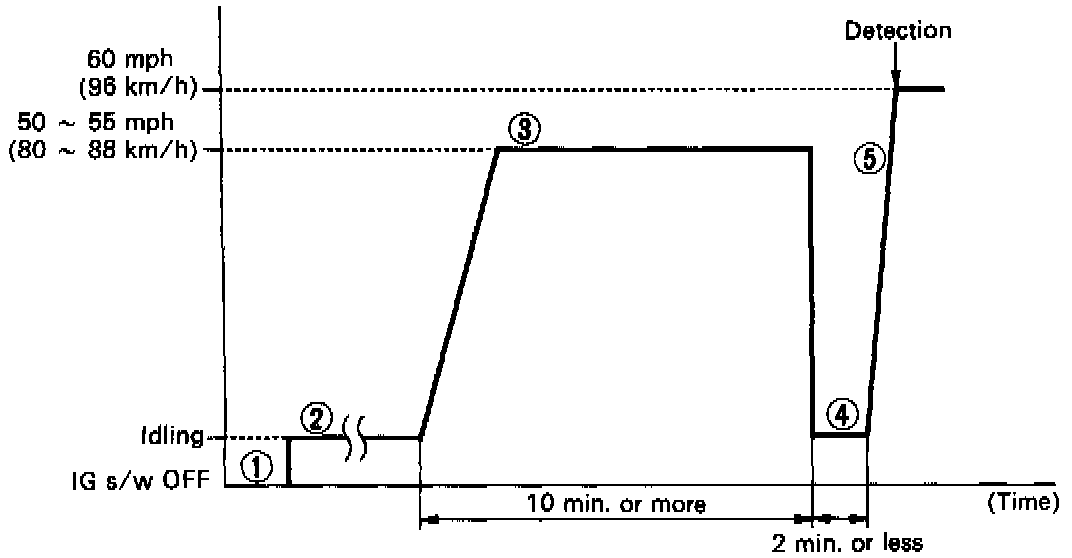 (5) After performing the idling in (4), perform acceleration to 60 mph (96 km/h) with the throttle valve fully open.