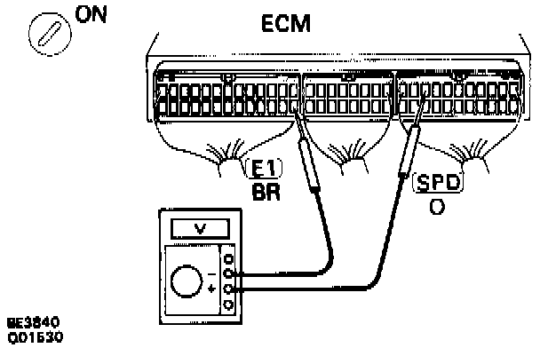 2. Measure voltage between terminals SPD and E1 of ECM.