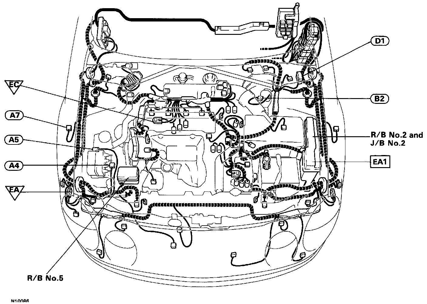 Location of Connectors in Engine Compartment