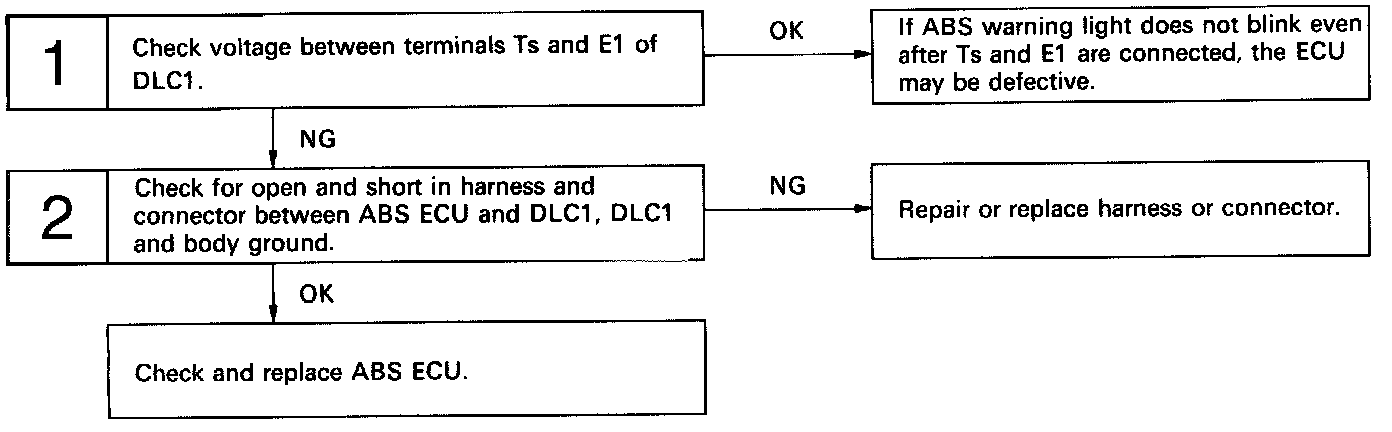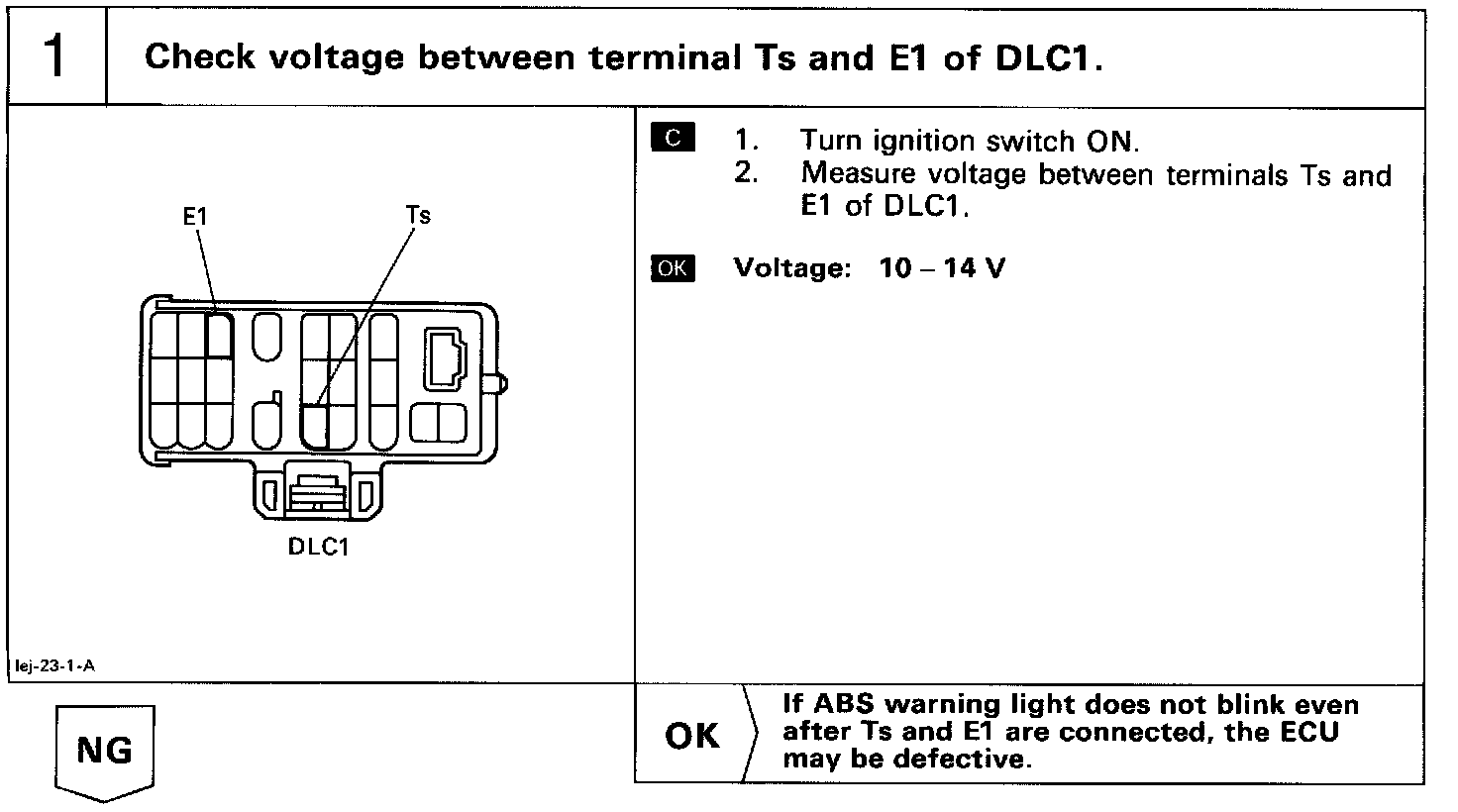 Connecting terminals Ts and E1 of the DLC1 in the engine compartment starts the check.