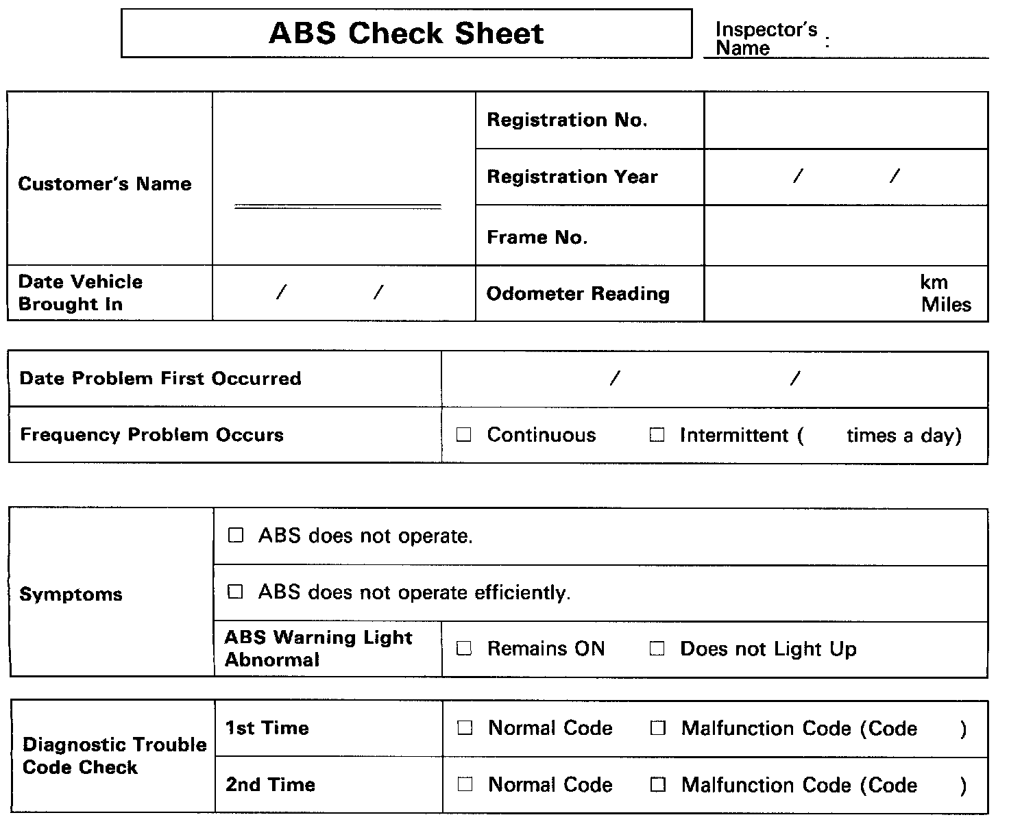 ABS Check Sheet:
