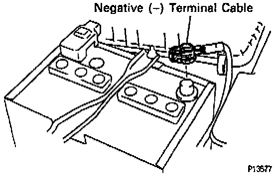 CAUTION: Work must be started after 90 seconds from the time the ignition switch is turned to the "LOCK" position and the negative (-) terminal cable is disconnected from the battery.