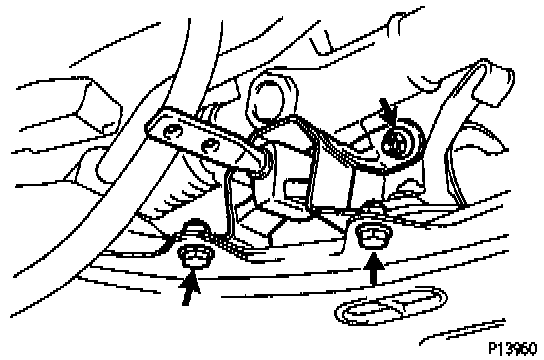 g. Remove the 2 bolts holding the center member to the body, and remove the center member and rear engine mounting insulator.