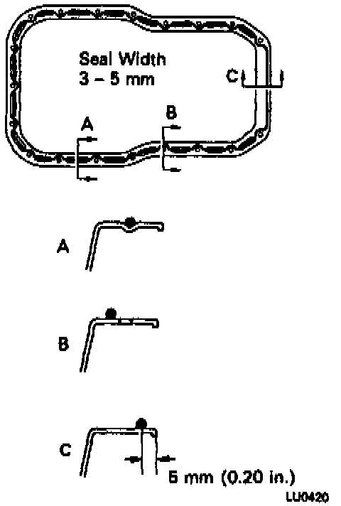 b. Apply seal packing to the oil pan as shown in the illustration.