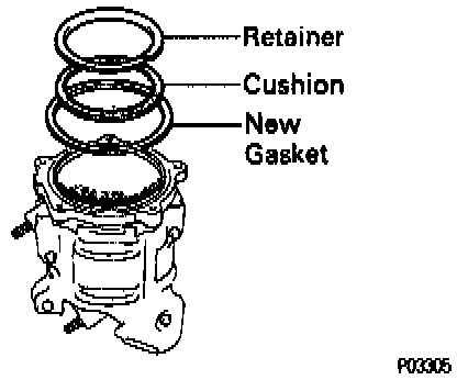 a. Place the cushion, retainer and a new gasket on the TWC.