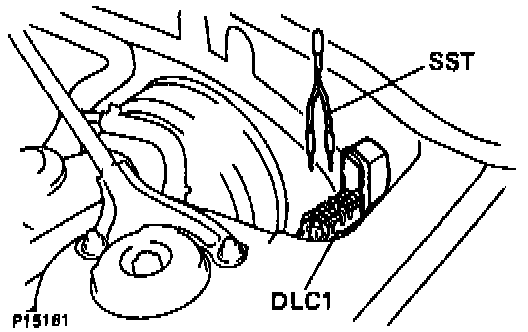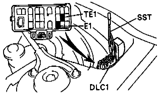 (b) Using a jumper wire (Special Service Tool (SST) 09843-18020), connect terminals TE1 and E1 of the data link connector 1 (DLC1).