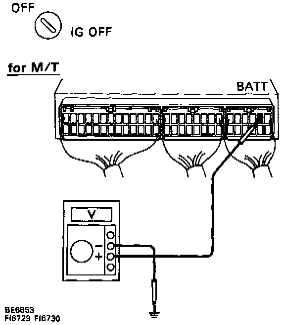 ^ Measure voltage between terminal BATT of the engine control module and body ground.