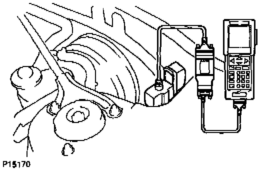 1. Hook up the TOYOTA break-out-box and TOYOTA hand-held tester to the vehicle.