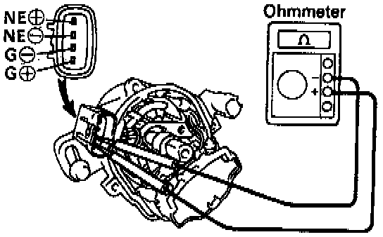 ^ If the resistance is not as specified, replace the distributor housing assembly.