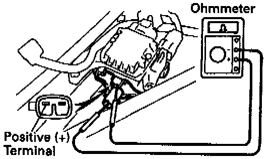 - Using an ohmmeter, measure the resistance between the positive (+) and high-tension terminals.